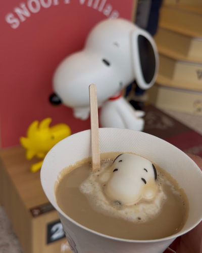 2. ラテのスヌーピーを揺らしてみる カフェラテのスヌーピーはぷるぷる揺れるので、動画(リールやTikTok)で撮ると可愛さが倍増します。
