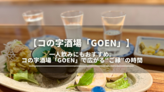 川越で一人飲みできる居酒屋を探しているならコの字酒場「goen」。地元食材を使った丁寧な料理と豊富な日本酒が楽しめる落ち着いた空間。川越でゆっくり飲みたい方におすすめの一軒です。